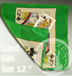 Imported from Italy, these are 100% beautifully printed 100% silk. You are supplied a pack of two silks, one shows a blank card the other a regular playing card. Routines are endless, but we give an instruction with suggested effects. Various sizes according to your requirements. Perfect, quality silk with a playing card printed inside a border. Available in three different sizes ideal for close up or stage. Each set comes with one printed and one blank card silk, plus instructions for various tricks.