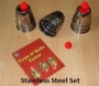 The cups are in a variety of sizes and metals, you should choose what you would find most suitable to your performance style. ;Obviously, the Aluminium Cups are going to be much lighter than the Steel or Brass ones. Video shows the Giant Cups & Balls (4"x3.75") in a short performance. The approximate size of the cups is shown in inches (height first, diameter second) The Cups & Balls are a classic magician's prop, capable of a huge variation of routines and sets are made from a variety of materials.We always have a large variety of sets in stock in our London shop, or you can choose from our more popular sets in the drop down menu.