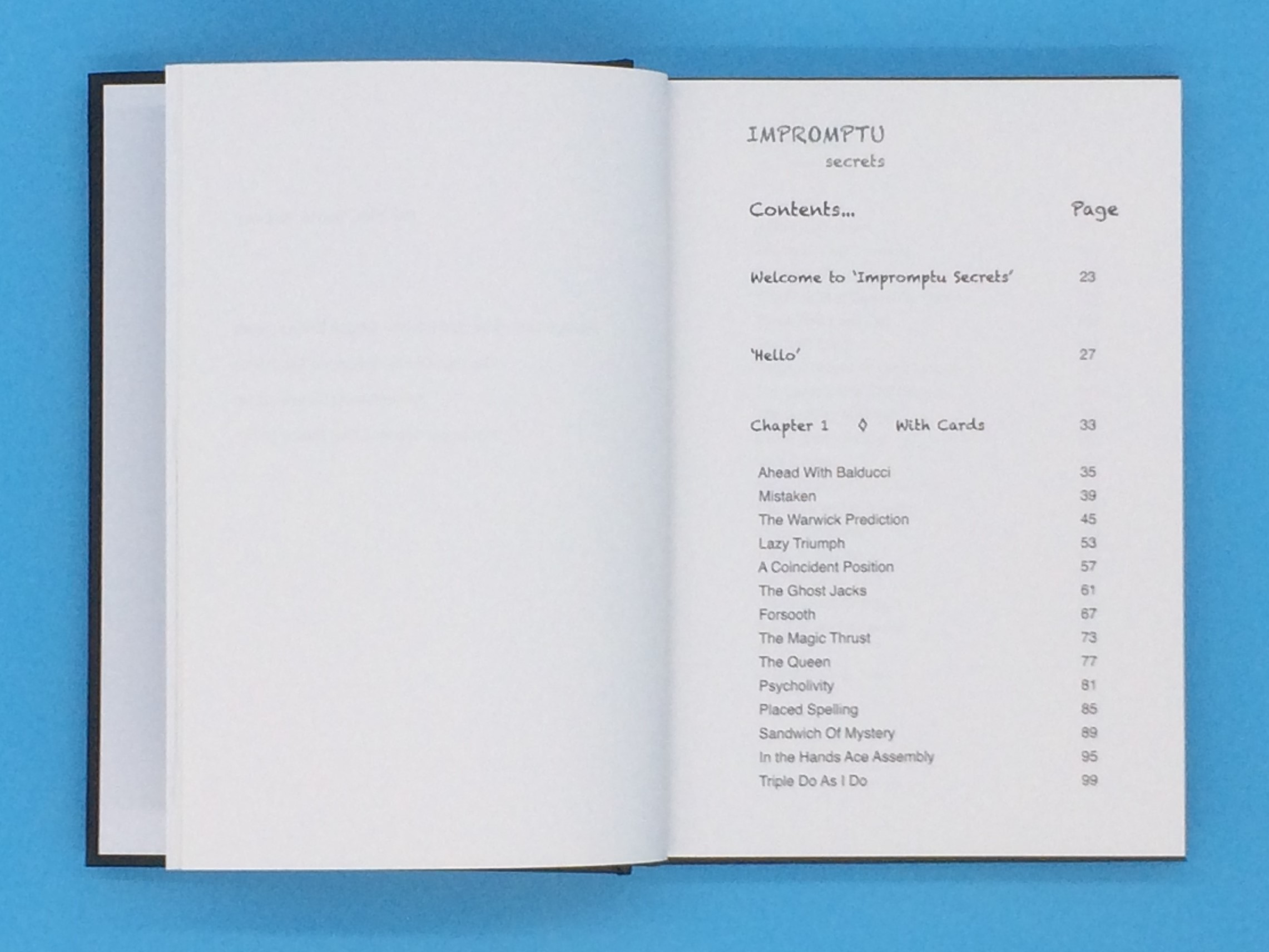 With 34 impromptu card routines (plus 8 impromptu routines without cards), 10 moves, 4 previously unpublished Vernon variations and an essay on the Malini Colour Change, you can see why it caused such a stir on its publication. For those who are not already aware of Dominic Twose - his magic knowledge is immense, he was a pupil of the legendary close up magic expert Fred Robinson, he has studied classic material from the greats of magic for 40 years and is currently completing a book on Bruce Cervon. Here, in his first major release to the magic world is a book you'll treasure and keep, referring to it again and again.