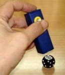 A beautiful effect involving a small tube, rod and a single dice (die). The tube has a hole through the sides at one end, the die has a matching hole. The die is dropped into the tube and locked in place by pushing the solid rod through both tube and die. Everything looks clean and above board - until, at the magician's command, the die penetrates through the rod and falls from the tube.